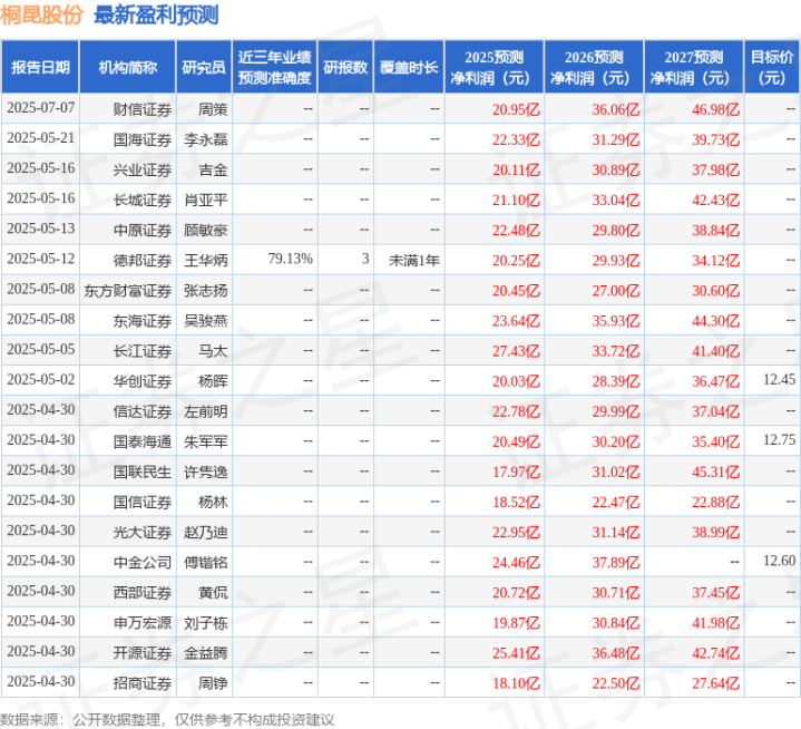 最新盈利预测明细如下:
